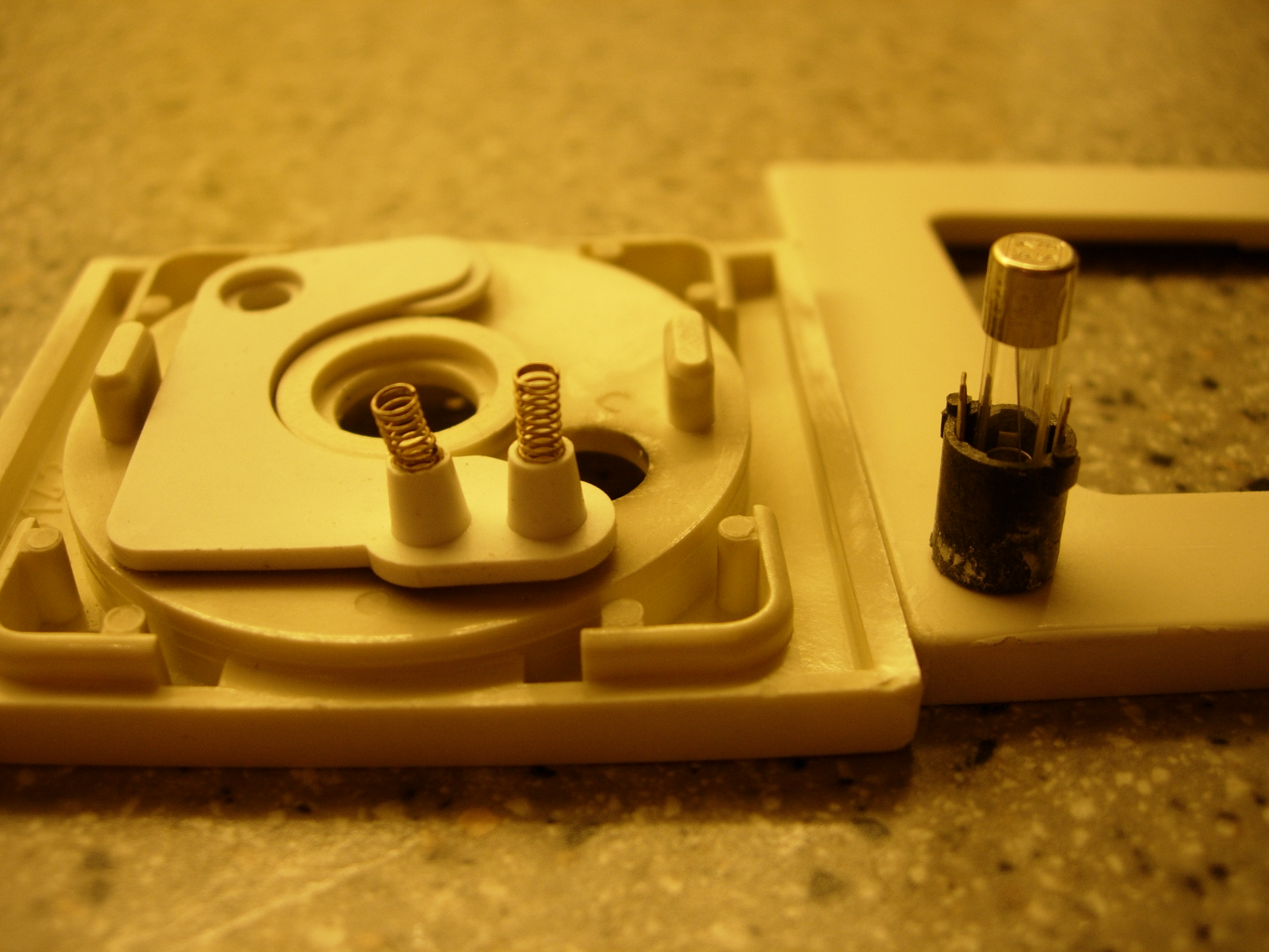 bara ca 5 kr att byta. Säkringen sitter bakom reglaget enligt bilderna. Ta med