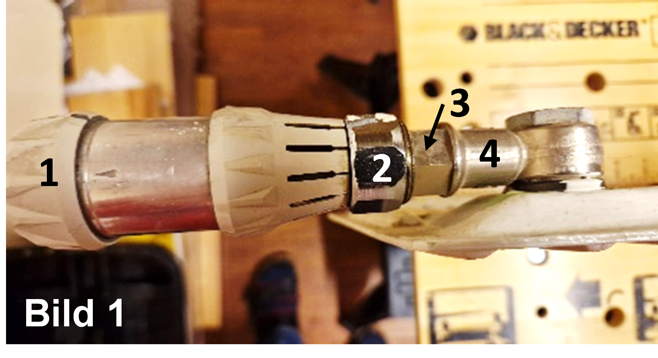 på Bild 1) bredvid själva termostatdelen (nr 4 på Bild 1) med en