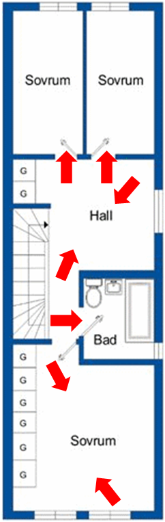 Klicka på någon av de röda 'kamerorna' på ritningen så får Du se exempel på interiörer som de kan se ut därifrån.